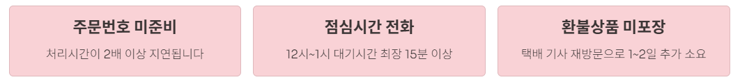- 전화 전 주문번호, 회원번호 필수 준비 (처리시간 50% 단축)
