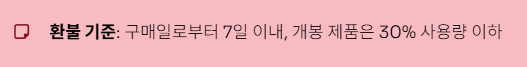 - 환불 상품은 택배 기사 방문 전 포장 완료 (당일 수거 가능)