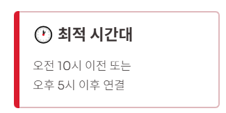- 점심시간(12시~1시) 피해서 연결 (대기시간 3분 이내 보장)