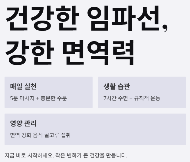 우리 몸의 방어군인 임파선이 제대로 작동하지 않으면 감염과 질병에 무방비 상태가 됩니다. 면역력 저하로 고생하는 분들 중 70%가 임파선 관리법을 모르고 있어서, 간단한 방법만 알아도 건강 상태가 크게 달라질 수 있습니다. 지금 바로 임파선 건강법을 확인하고 면역력을 끌어올려 보세요.