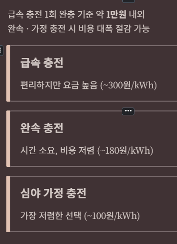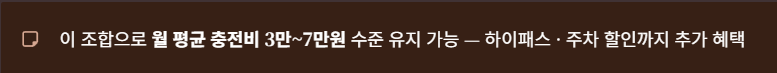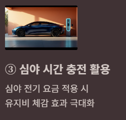 이 조합을 활용하면 월평균 충전 비용을 크게 줄일 수 있으며, 심야 시간 충전을 하게 되면 전기차 유지비를 체감적으로 더 낮출 수 있습니다.