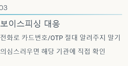 개인정보를 빌미로 한 금융기관 사칭 전화가 급증할 예정입니다. 전화로 카드번호나 OTP번호를 절대 알려주지 말고, 의심스러우면 해당 기관에 직접 확인하세요.