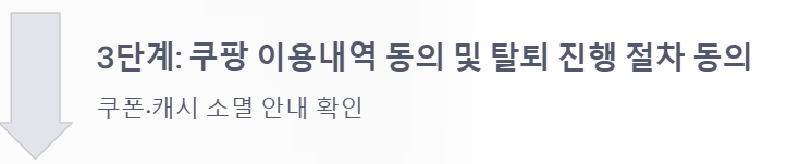- 쿠팡 이용내역 동의 및 탈퇴 진행절차 동의 확인(쿠폰·캐시 소멸 안내 등) → 동의.