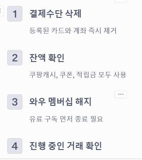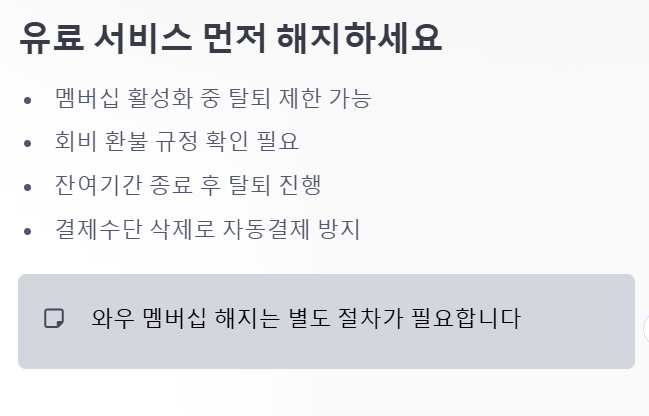 - 와우 멤버십(유료)은 먼저 해지해야 하는 경우가 있음.