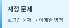 | 계정 문제 | 로그인 문제 → 이메일 문의 병행 |