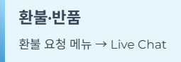 | 환불·반품 | 환불 요청 메뉴 → Live Chat |