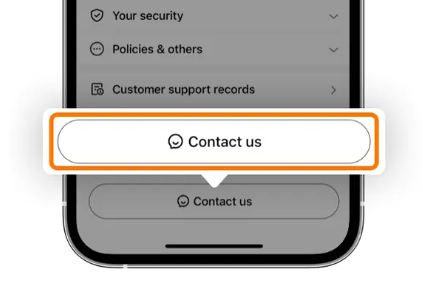 모든 상담은 앱·웹 기반 채팅/문의양식의 고객센터(Contact Us/Support Center)를 통해 이루어집니다.