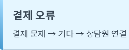 | 결제 오류 | 결제 문제 → 기타 → 상담원 연결 |