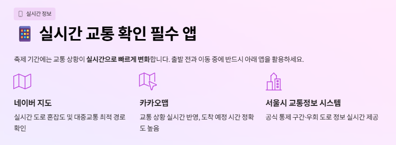 ✔ 주의: 행사 기간에는 교통 통제 구간이 발생하므로 실시간 교통정보 앱 확인 필수!