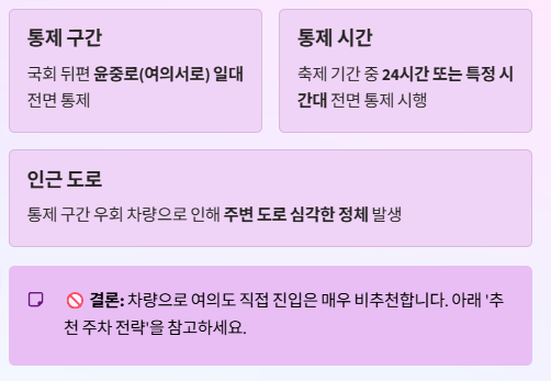 - 통제 구간: 국회 뒤편 윤중로 일대