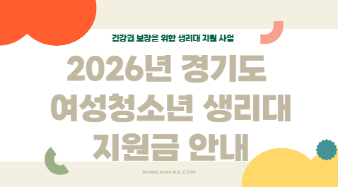 경기도에서는 청소년 여성의 건강권 보장을 위해 매년 생리대 지원금을 지급하고 있습니다. 2026년에도 동일하게 경기지역 청소년을 대상으로 현금성 지역화폐 형태로 지원이 이루어질 예정으로 연중 상시 신청이 가능하지만, 예산 소진시 조기 마감 될 수 있습니다. 신청 후 평균 2주 이내 승인되며, 승인 즉시 바우처 포인트가 지급됩니다. 아래 신청 대상, 지원 금액, 신청방법 및 신청전 유의사항을 자세히 안내드리니 속히 신청하여 혜택을 받으시기 바랍니다.