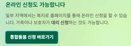 통합 돌봄은 가까운 주민센터 또는 행정복지센터에서 신청할 수 있습니다.