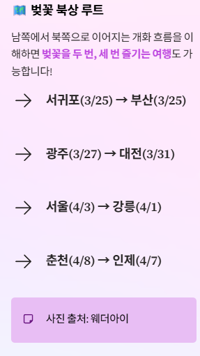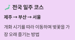 시간이 충분하다면 제주 → 부산 → 서울까지 이어지는 전국 벚꽃 일주 코스도 추천됩니다.