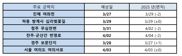 2026년 전국 벚꽃 개화시기