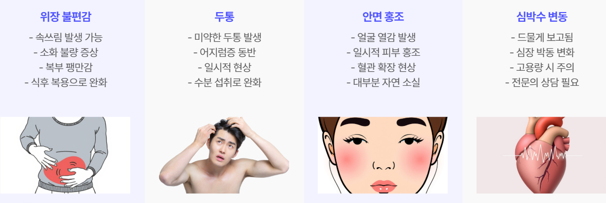 - 속쓰림 또는 위장 불편감